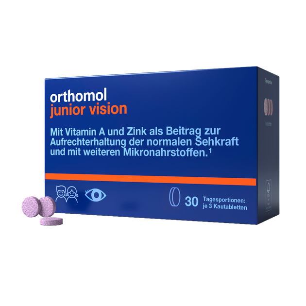 Жувальні таблетки Orthomol Junior Vision Чорниця - Персик Курс 30 таблеток