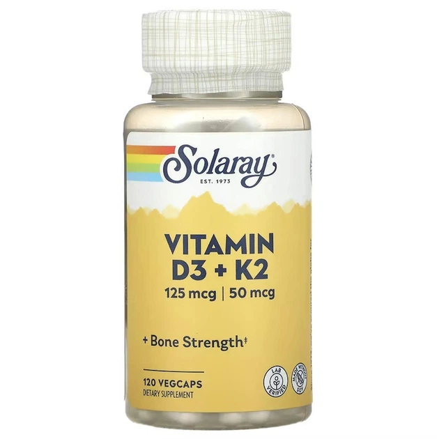 Вітаміни D3 і K2, Solaray, без сої, 120 вегетаріанських капсул