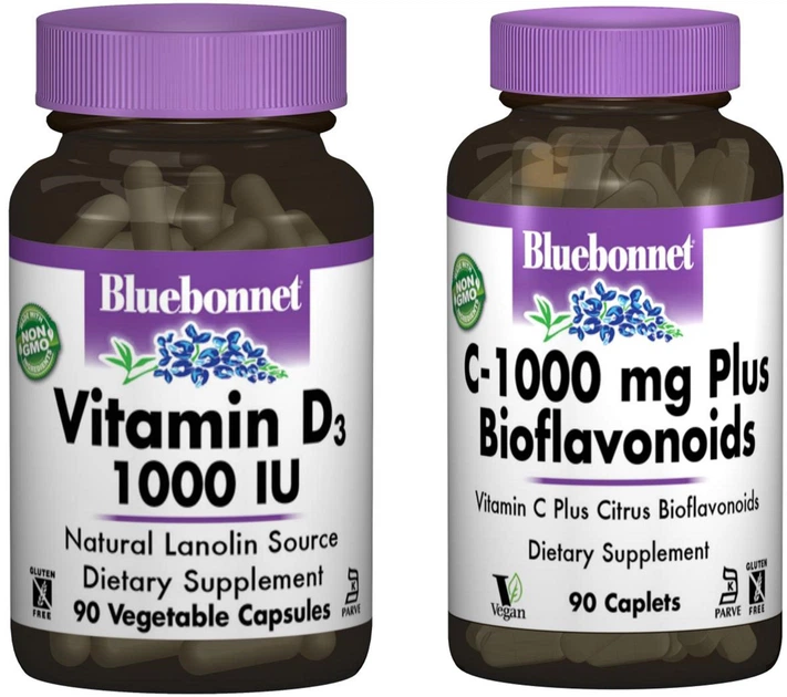 Набір Вітаміни Bluebonnet Nutrition Вітамін D3 1000IU 90 гелевих капсул + Вітаміни Bluebonnet Nutrition З -1000 + біофлавоно