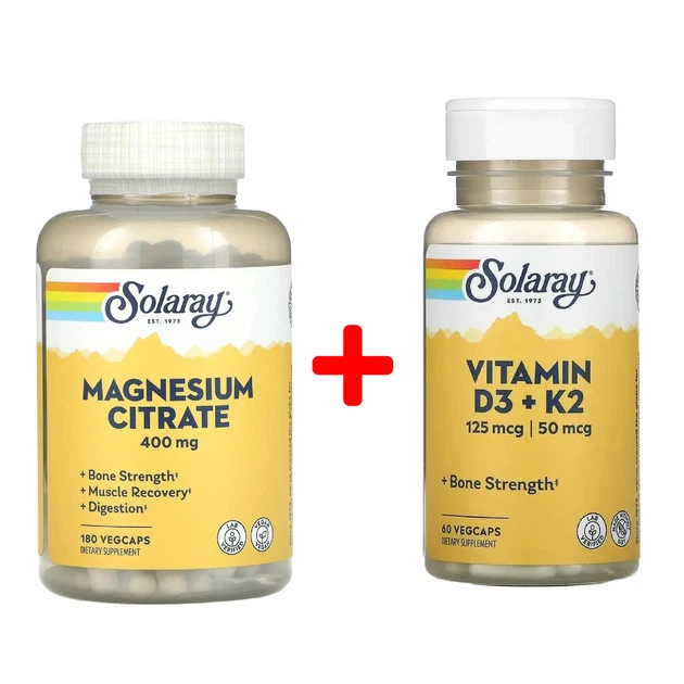 Комплект для кісток та серця Solaray Магній цитрат 180 капс і Вітамін Д3+К2 60 капс