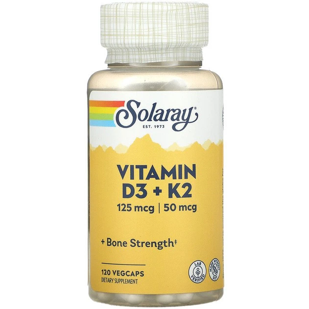 Вітамін D3 і К2, SOLARAY "Vitamin D3 + K2" без сої (120 капсул)