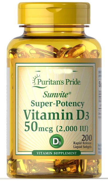 Вітаміни Puritan's Pride Vitamin D3 50 mcg (2000 IU) 200 капсул (4384301692)