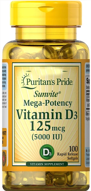 Вітаміни Puritan's Pride Vitamin D3 125 mcg (5000 IU) 100 капсул (4384301694)