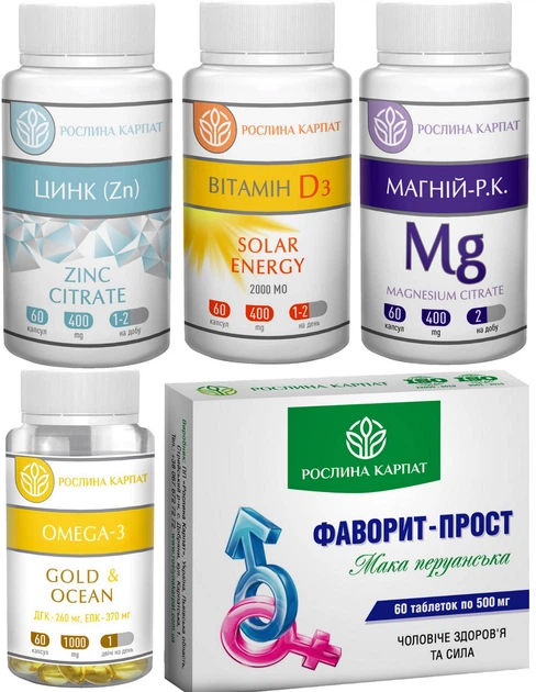 Програма для чоловіків, Фаворит прост, Цинк, Магній Р.К., Омега-3, Вітамін Д3, "Рослина Карпат"