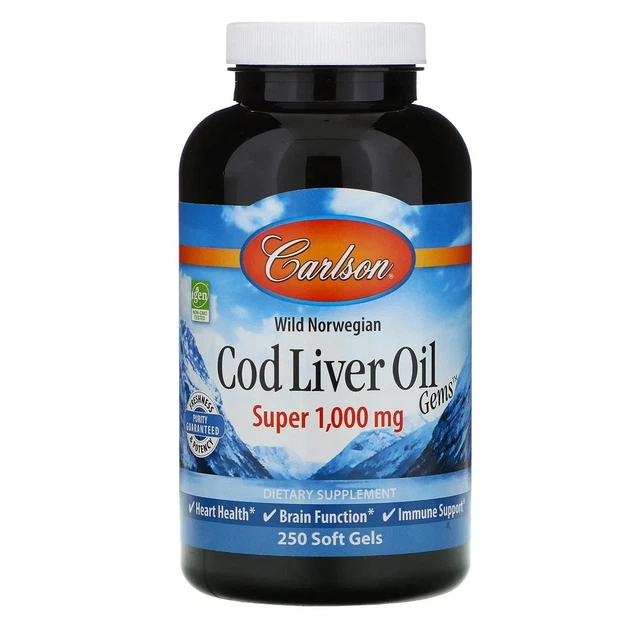 Риб'ячий жир із вітаміном А і D3 Cod Liver Oil Super With D3 wild norwegian 1000 мг, Carlson Labs, 250 капсул