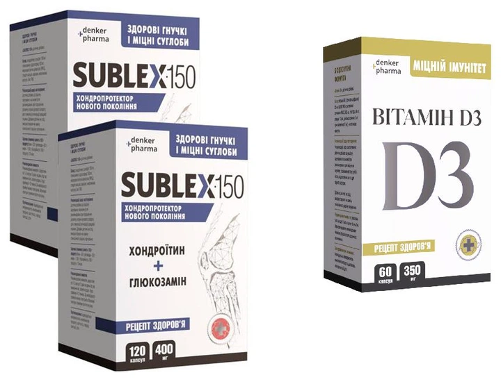 Хондропротектор SUBLEX-150 (САБЛЕКС-150), Хондроїтин + Глюкозамін 240 капсул, Вітамін D3 - 2000 МО (50 мкг) для міцного імун