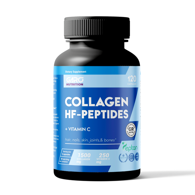 Морський колаген пептидний Garo Nutrition 1 та 3 типу з вітаміном С для волосся нігтів та суглобів 120 капсул