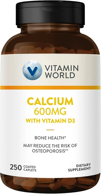Добавка преміум-класу кальцій та вітамін D3 Vitamin World Calcium 600mg + Vitamin D3 250 таблеток