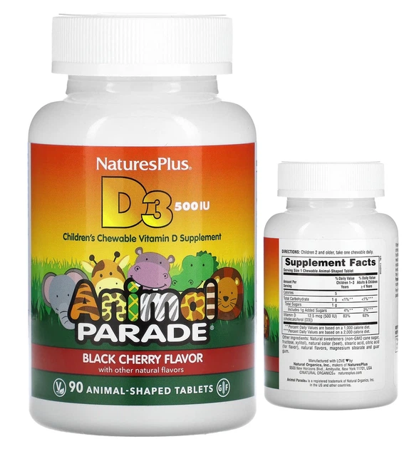 NaturesPlus Source of life animal parade вітамін D3 зі смаком натуральної черешні 500 МО 90 таблеток Д3 зубів
