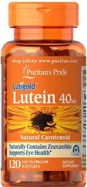 Лютеїн для зору Puritan's Pride Lutein 40 mg contains Zeaxanthin 120 softgels