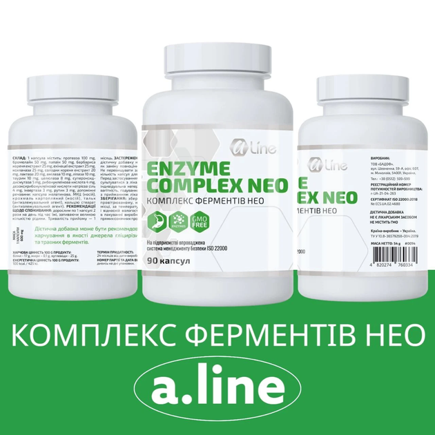 Комплекс ферментів НЕО – ензими, підтримка травлення (A-Line ENZYME COMPLEX NEO), A-Line, 90 капсул