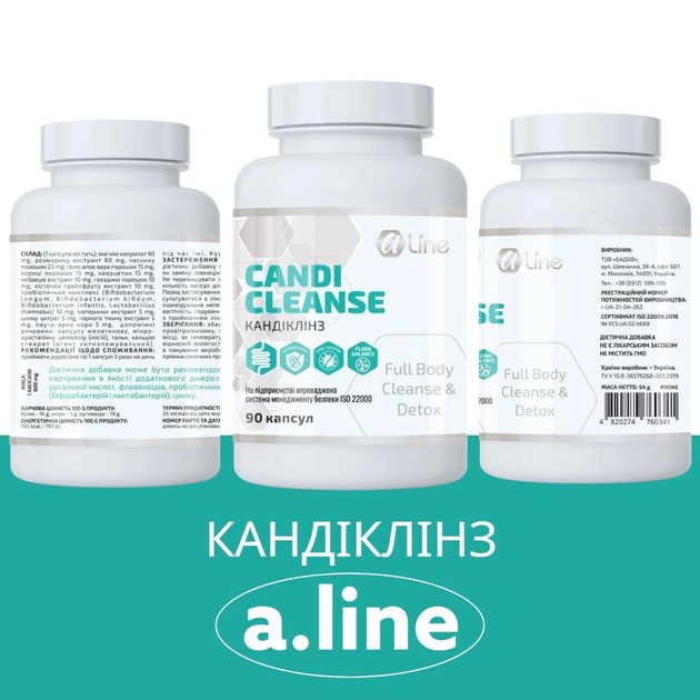 Кандiклінз (Aline CANDI CLEANSE) — Пригнічення грибків роду Candida, A-Line, 90 капсул