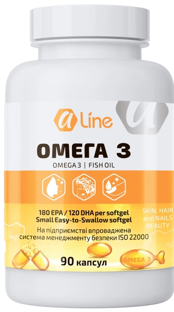 Омега 3 з вітаміном Е (180 EPA і 120 DHA) 90 капсул. комплекс поліненасичених жирних кислот, A-line.