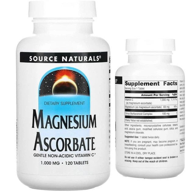 Source Naturals Магнію аскорбат 1000 мг 120 таблеток з витамином С комплекс мінералів сну