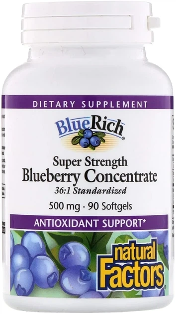 Концентрат чорниці 500 мг BlueRich Super Strength натуральна добавка Natural Factors 90 капсул