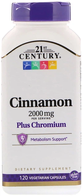 Кориця + Хром 2000 мг натуральна добавка 21st Century 120 рослинних капсул (740985273838)
