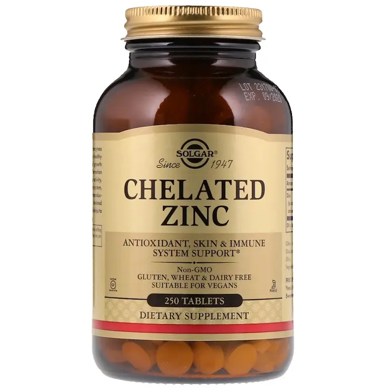Хелат цинку (Chelated Zinc) 22 мг, So lg ar є кофактором для 300 ферментів в організмі. Він благотворно впливає на шкіру. Крім того, цинк бере участь у зростанні та розвитку клітин та формуванні ДНК. Він має антиоксидантну дію, підтримує імунну систему організму, а також репродуктивну функцію у чоловіків. Одним із важливих мікроелементів, необхідних організму, є цинк . Його рекомендується