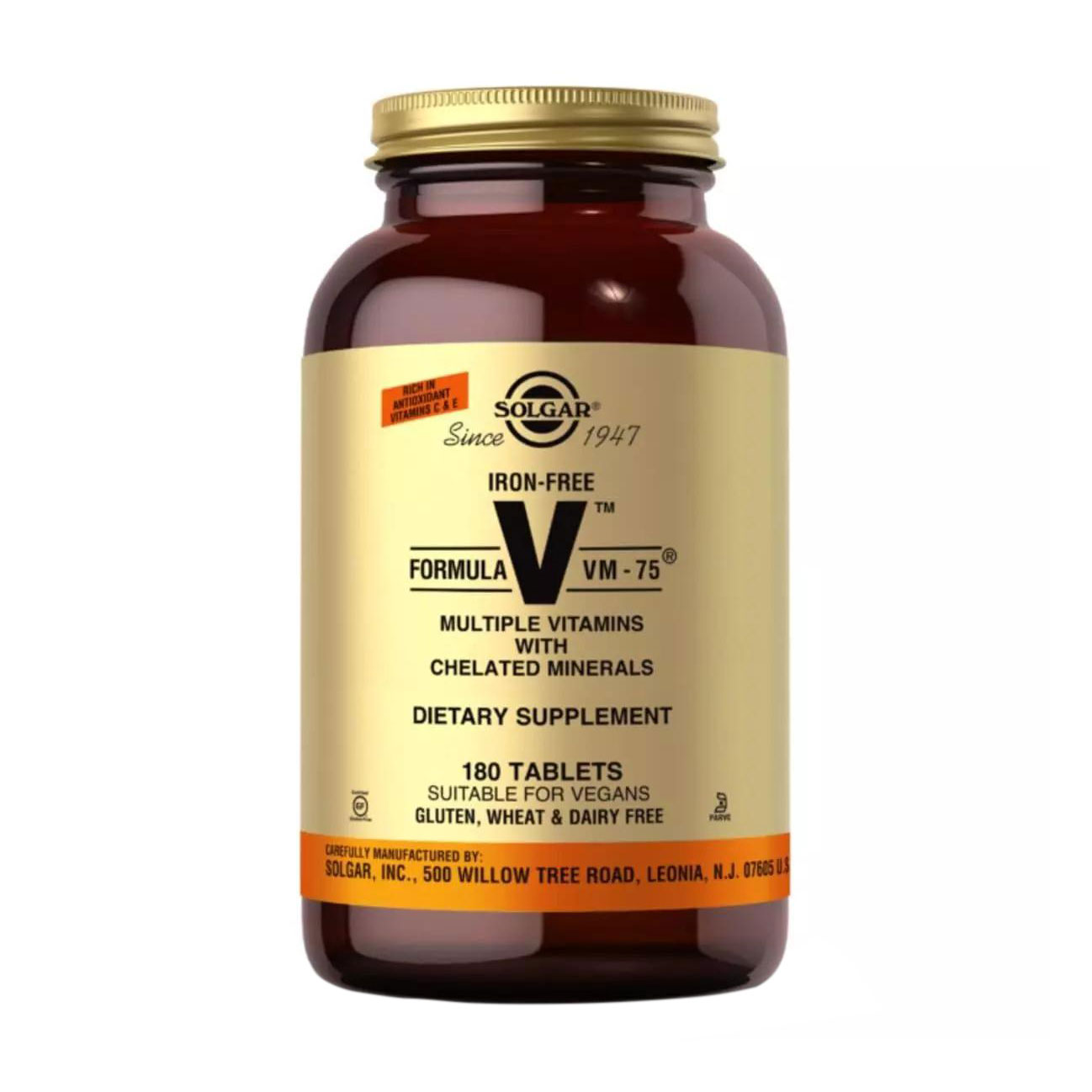 Вітамінно-мінеральний комплекс Solgar Formula VM-75 без заліза, 180 таблеток