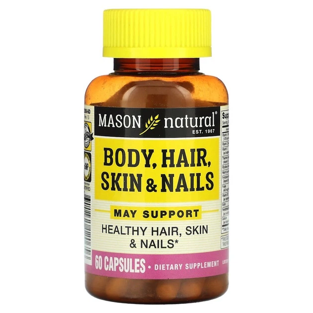 Вітаміни та мінерали Body Hair Skin and Nails, 60 капсул Mason Natural 000289960