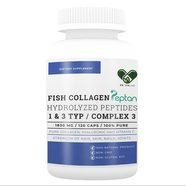 Морський колаген для суглобів волосся та шкіри Envie Lab з гіалуроновою кислотою з вітаміном С 1 та 3 типу 120 капсул