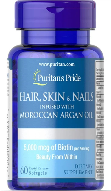 Комплекс для шкіри, нігтів і волосся Puritan's Pride, Hair, Skin & Nails пройняті with Moroccan Argan Oil 60 капсул (PTP-536
