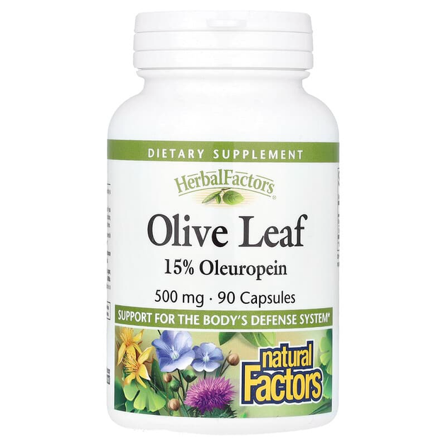 Екстракт листя оливи, Olive Leaf, Natural Factors, 500 мг, 90 капсул (NFS-04570)