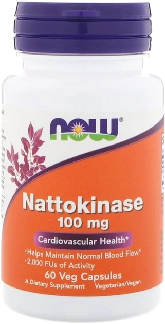 Наттокіназа, 100 мг, Now Foods 60 капсул рослинного походження (733739031402)