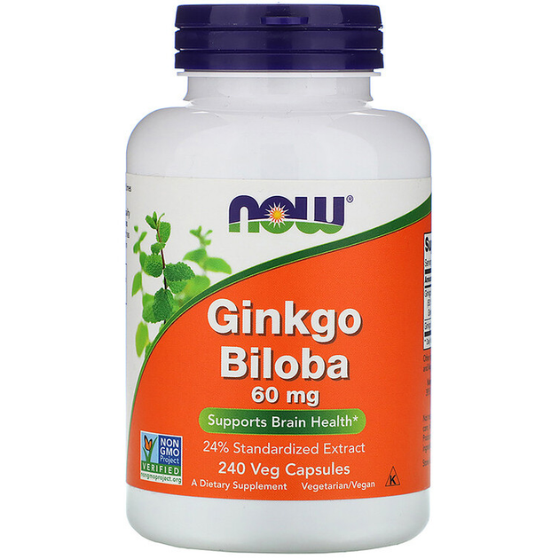 Гінкго білоба NOW Foods "Ginkgo Biloba" 60 мг (240 рослинних капсул)