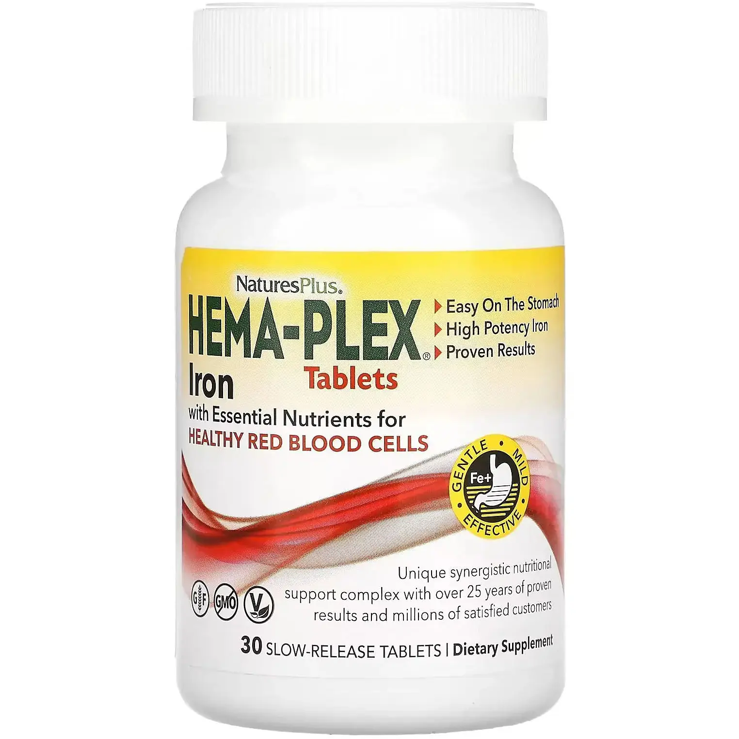 Комплекс вітамінів і мінералів Nature's Plus Hema-Plex Iron 30 пігулок із повільним вивільненням в банці