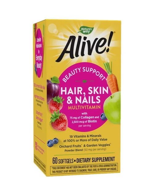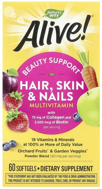 Мультивітаміни для волосся шкіри та нігтів Nature's Way Alive! Hair. Skin & Nails Multi-Vitamin 60 капсул (033674110942)