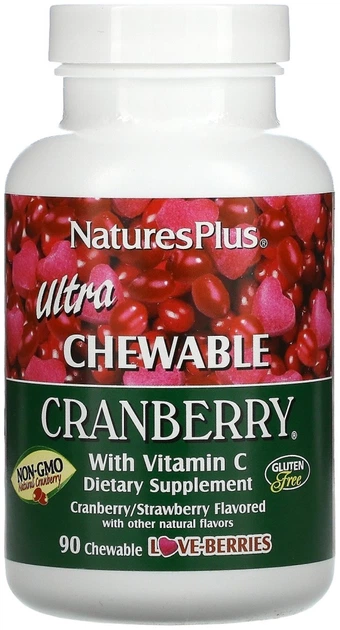 Ультра Журавлина натуральна добавка Natures Plus Ultra Chewable Cranberry 90 жувальних таблеток (97467039568)