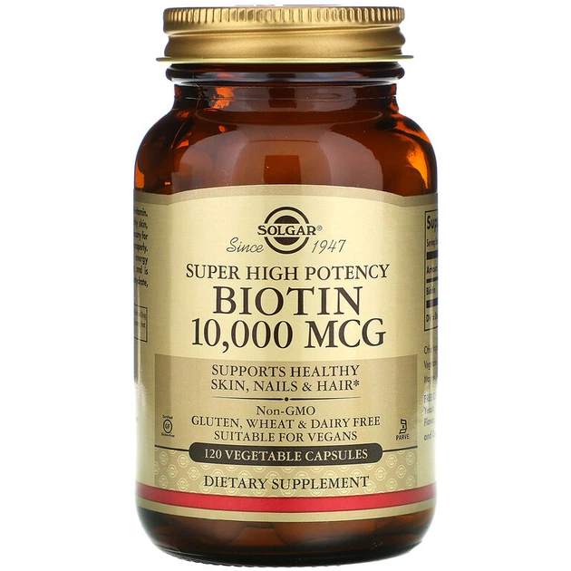 Біотин SOLGAR "Super High Potency Biotin" високоефективний вітамін B7, 10000 мкг (120 капсул)