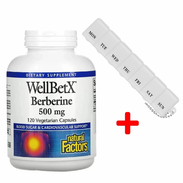 Берберин 500 мг Natural Factors WellBetX Berberine 120 капсул + Подарунок Таблетниця на 7 днів