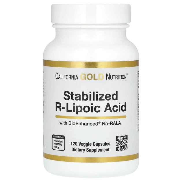 Стабілізована R-ліпоєва кислота California Gold Nutrition (Stabilized R-Lipoic Acid) 100 мг 120 шт