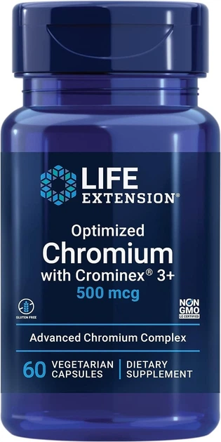Оптимізований хром Life Extension, Optimized Chromium with Crominex 3+, 500 мкг, 60 капсул