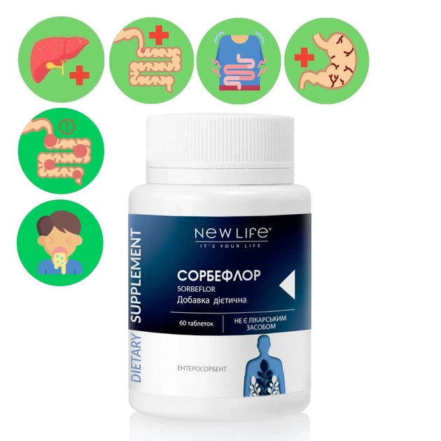 Сорбефлор / Sorbeflor Добавка Дієтична Ентеросорбент Нове Життя (New Life) 60 Таблеток