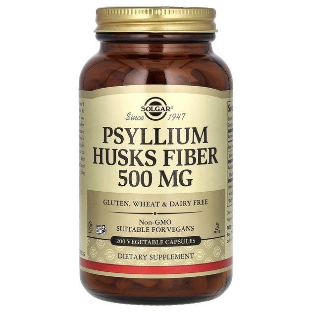 Клітковина з лушпиння насіння подорожника, Solgar, 500 мг, 200 вегетаріанських капсул