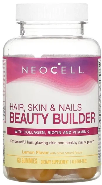 Комплексні вітаміни для зміцнення волосся і нігтів NeoCell Hair, Skin & Nails Beauty Builder 60 жув таблеток лимон в упаковц