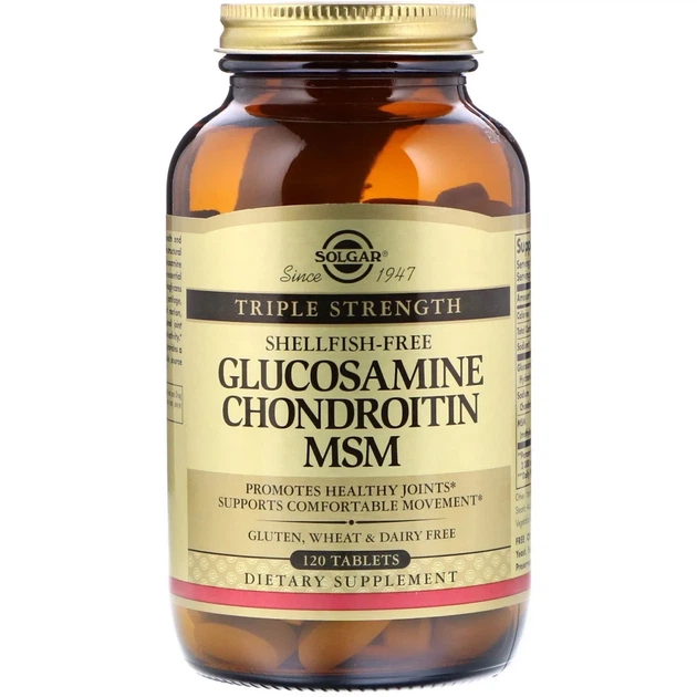 Глюкозамін хондроїтин МСМ Glucosamine Chondroitin MSM, Solgar, потрійна сила, 120 таблеток