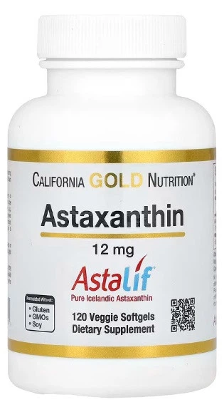 AstaLif чистий ісландський астаксантин 12 мг,120 капсул, потужний антиоксидант, для здоров'я очей, для здоров'я шкіри, для п