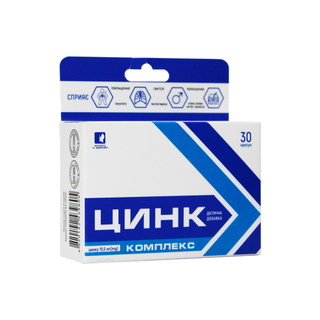 Цинк комплекс Красота та Здоров'я 15 мг цинку 30 капсул 11951