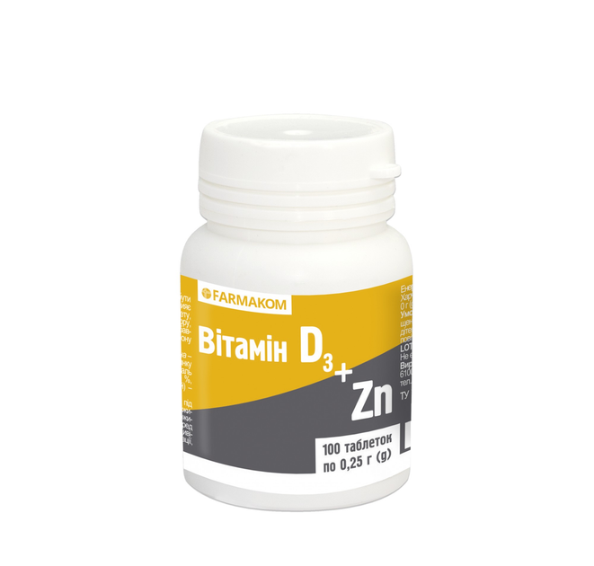 Вітамін D3 + Цинк FARMAKOM 100 табл./уп. 250 мг (4820025741278)