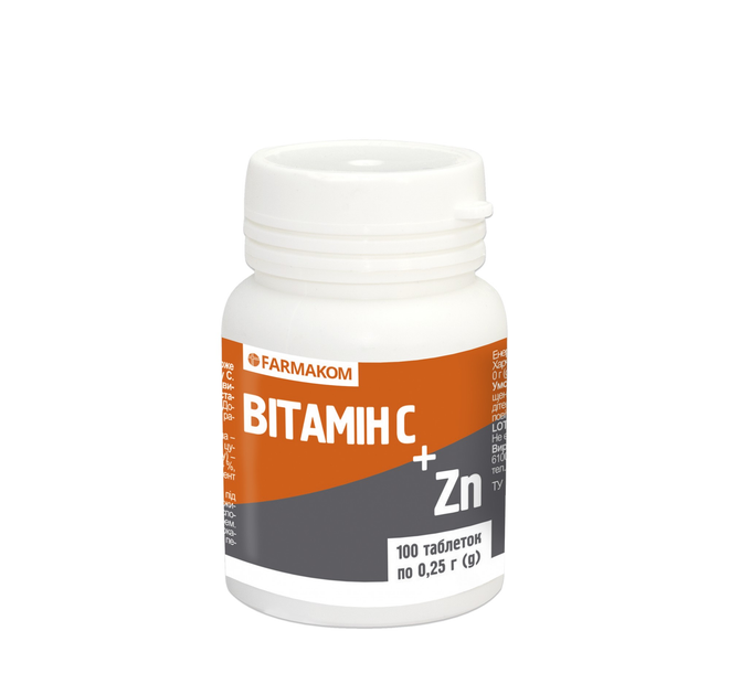 Аскорбінова кислота + Цинк FARMAKOM 100 табл./уп. 250 мг (4820025741285)