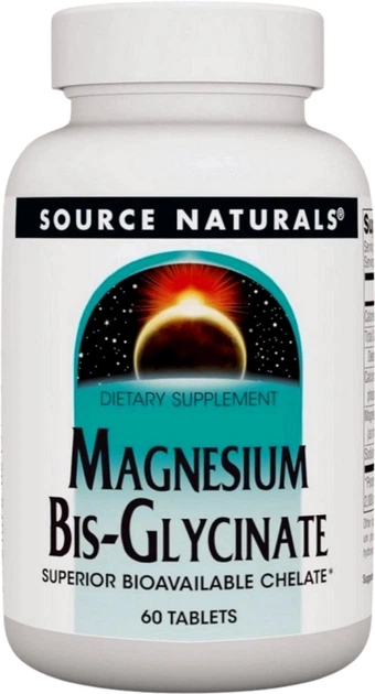 Мінерали Source Naturals Магній Бісгліцинат Magnesium Bis-Glycinate 60 таблеток