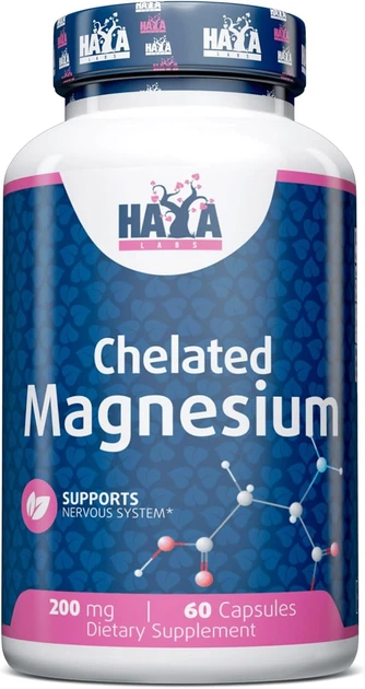 Магній Хелат Haya Labs Chelated Magnesium 200 мг 60 капсул