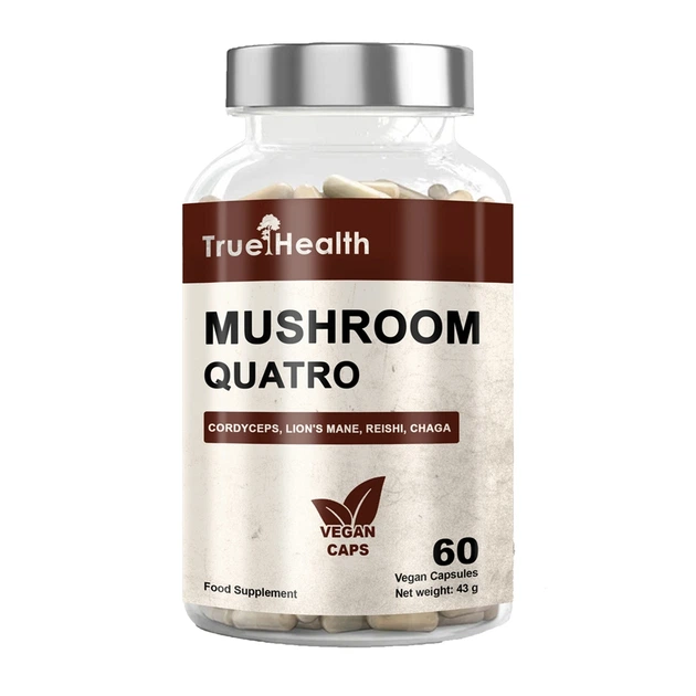 Натуральна добавка Mushroom Quatro, 60 вегакапсул True Health 000314832