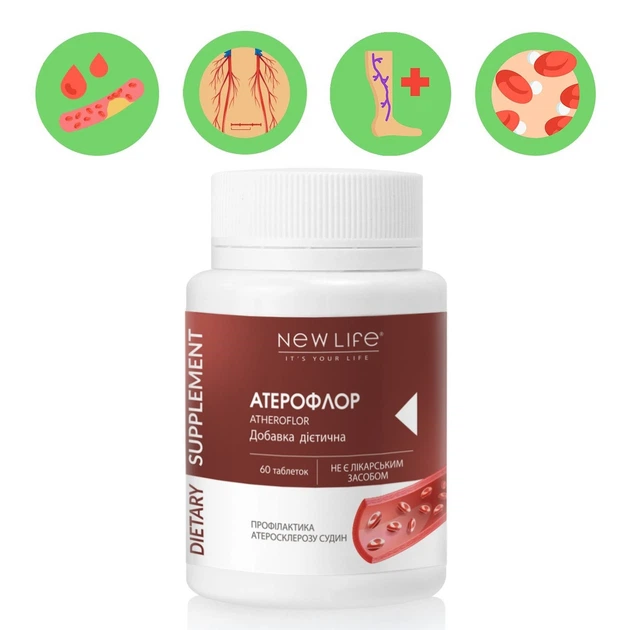 Атерофлор / Atheroflor Добавка Дієтична Для Підтримки Судин Нове Життя (New Life) 60 Таблеток