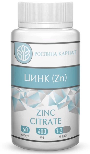 Цинк (Zn) 60 капс. «Рослина Карпат» зміцнює імунітет людини.