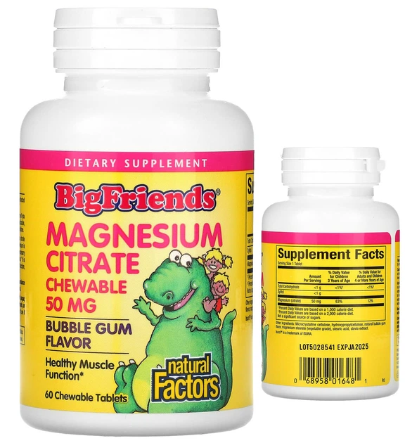 Natural Factors Big Friends цитрат магнію зі смаком жувальної резинки 50 мг 60 жувальних таблеток магній дитячий добавка