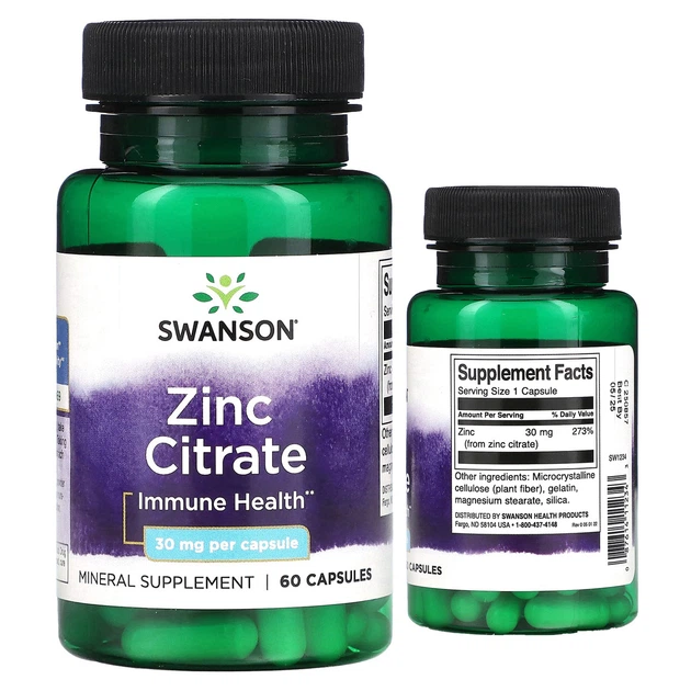 Цитрат цинку Swanson 30 мг 60 капсул зміцнення й підтримка імунної системи (87614112343)